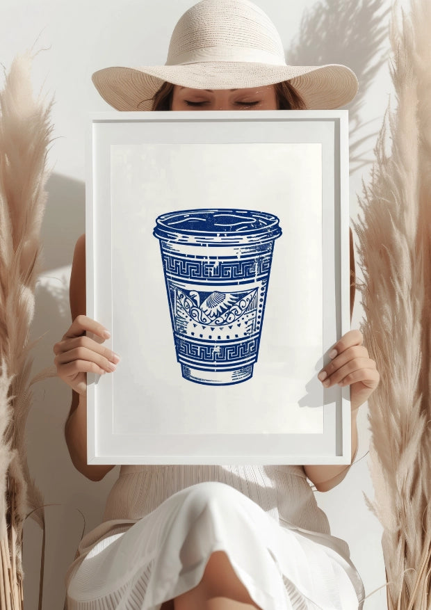 Plakat przedstawia ręcznie ilustrację kubka do kawy, ozdobionego klasycznym greckim wzorem. Każda linia, każda krzywa oddaje hołd kulturze starożytnych mistrzów, którzy sztukę podnieśli do rangi świętości. Dzięki wysokiej jakości druku na wytrzymałym papierze, kolory pozostaną intensywne i żywe przez długi czas.Dodaj Życia Swojemu Wnętrzu