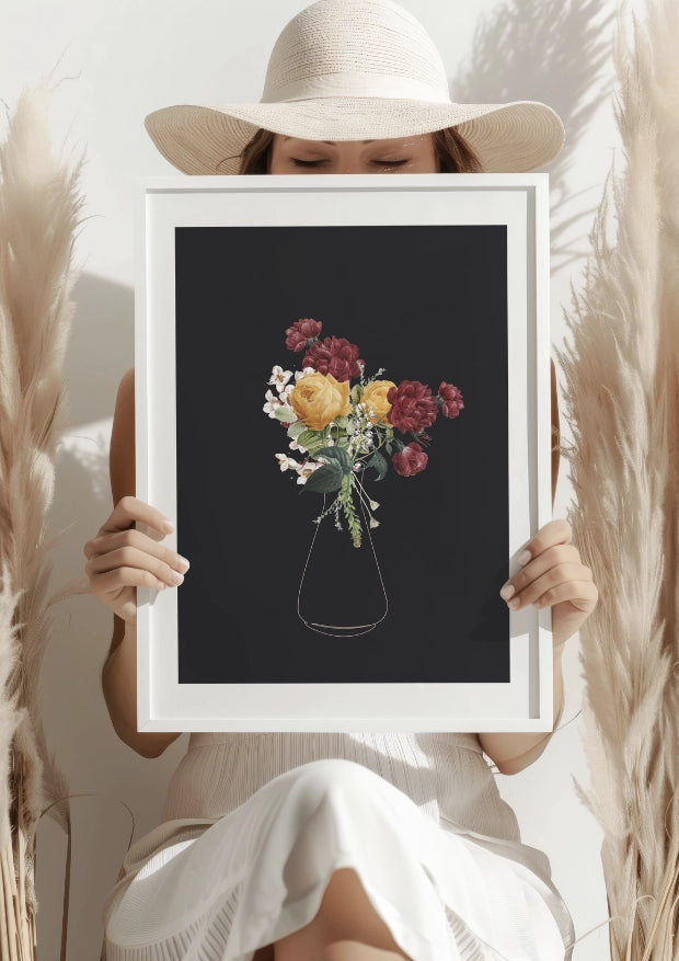 Zanurz się w świecie pełnym subtelności i elegancji dzięki plakatowi "Kwiatowa Kompozycja w Wazonie." To nie tylko dekoracja, ale artystyczne wyrażenie natury, które wnosi życie i kolor do Twojego wnętrza. Wyjątkowa kombinacja kwiatów uchwycona na ciemnym tle sprawia, że każda z barw jest jeszcze bardziej wyrazista i pełna mocy.Historia Ulotnego Momentu