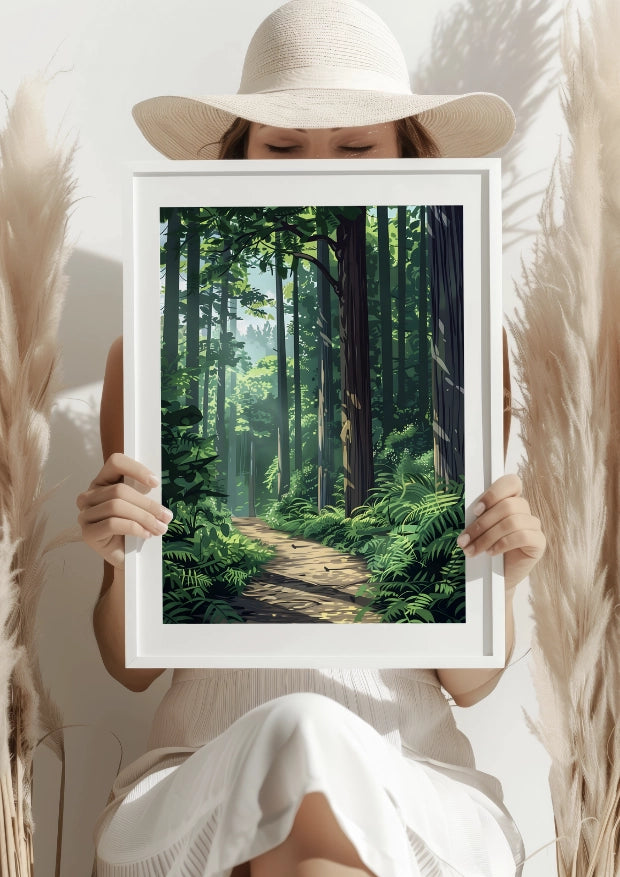 Wyobraź sobie, że przechadzasz się tą leśną ścieżką, czując delikatny zapach drzew i ciepło słońca na twarzy. Ten plakat stanie się Twoją codzienną ucieczką od zgiełku miasta, wprowadzając do Twojego wnętrza atmosferę ciszy i naturalnego ukojenia.Stwórz swoją własną leśną oazę
