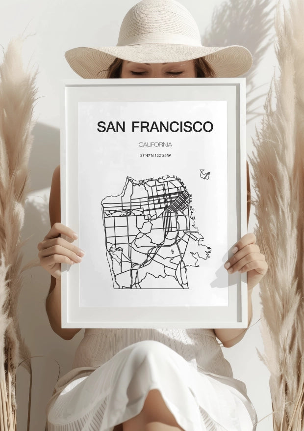 Unikalność tego mapowego plakatu San Francisco to więcej niż tylko linie i granice. To artystyczna odyseja po jednym z najbardziej kultowych miast świata. Dzięki subtelnej czerni na białym tle, plakat ten uchwycił złożoność i piękno tej metropolii w minimalistycznym stylu, który z łatwością wpasuje się w każde wnętrze.Detale, które zachwycają