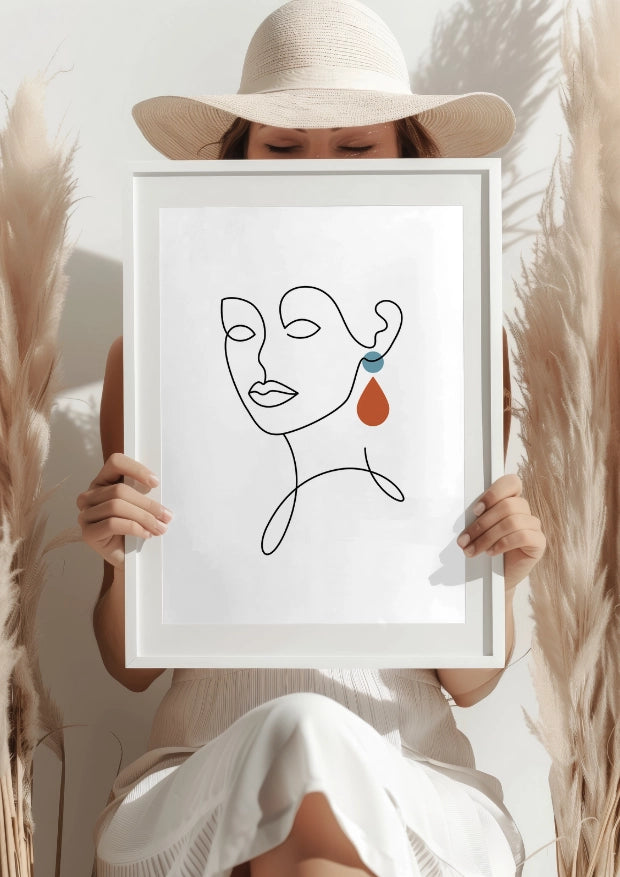 Minimalistyczna Kobieta z Kolorowym Kolczykiem Plakat