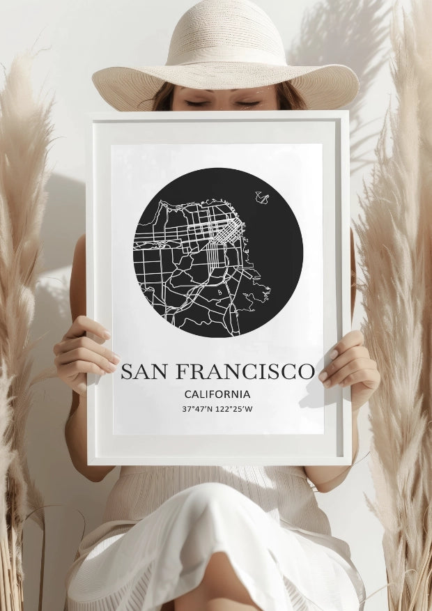 Wyjątkowy plakat "Minimalistyczna Mapa San Francisco" to perfekcyjna fuzja prostoty i stylu, która wnosi do wnętrza ducha jednego z najbardziej ikonicznych miast świata. Ta starannie zaprojektowana grafika z pewnością przyciągnie uwagę i doda wyrafinowania każdemu pomieszczeniu.Precyzyjnie Wykreślony Świat