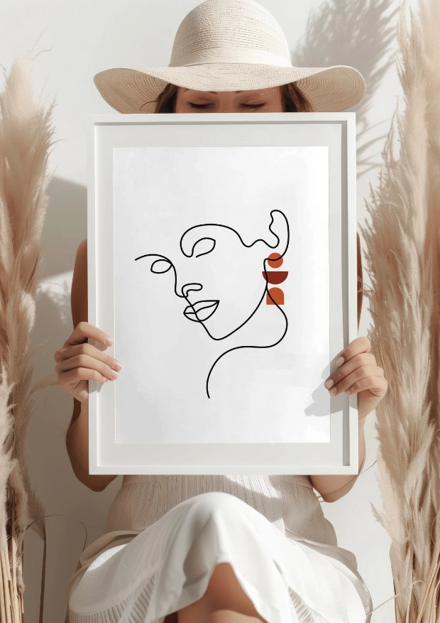Minimalistyczny Jednoliniowy - Twarz z Geometryczną Biżuterią Plakat
