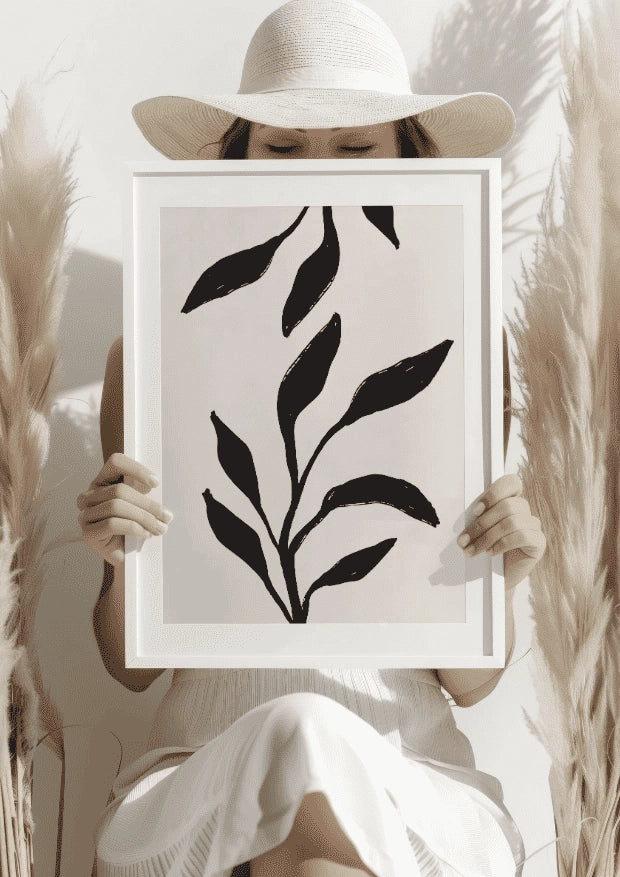 Ten plakat przedstawia liść w kontrastujących barwach czerni i bieli, który idealnie wpisuje się w estetykę minimalizmu. Prosta, ale wyrazista forma liścia przyciąga uwagę swoją czystą kompozycją i sprawia, że wnętrze zyskuje elegancję i nowoczesny charakter.Czysta linia, artystyczny wyraz