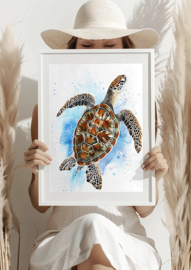 Zanurz się w niezwykłym świecie podwodnej przyrody z plakatem przedstawiającym majestatycznego morskiego żółwia, uchwyconego w wyrafinowanym stylu akwarelowym. Każdy szczegół tej pięknej istoty, od tekstury jej skorupy po delikatne ruchy płetw, oddany jest z artystyczną precyzją, zachęcając do odkrywania tajemnic oceanu.Barwy Natury w Twoim Wnętrzu