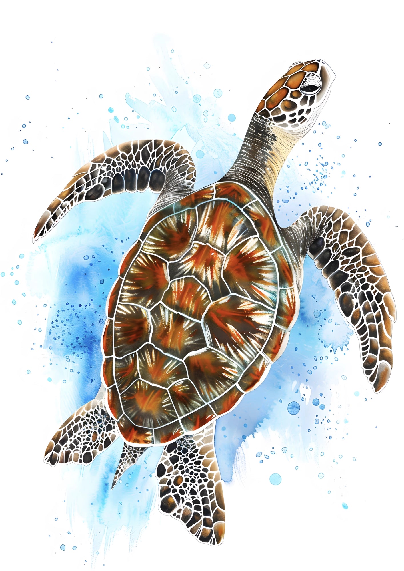 Dynamiczne kolory i płynne przejścia akwareli tworzą atmosferę świeżości i lekkości, które idealnie pasują do nowoczesnych przestrzeni. Turkusowe odcienie wody kontrastują z ciepłymi tonacjami żółwiej skorupy, przynosząc uczucie spokoju i harmonii.Symbol Ochrony Przyrody i Siły