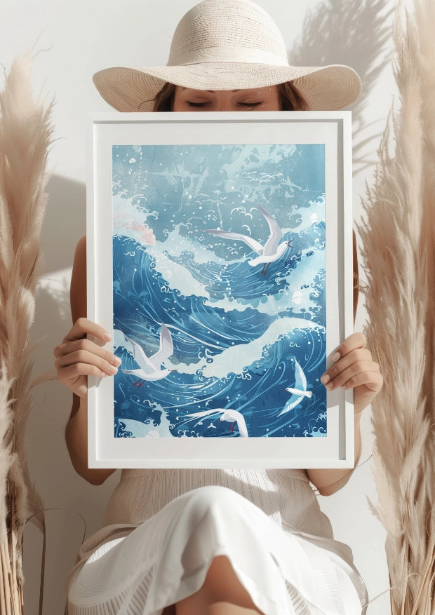 Stworzony z myślą o miłośnikach morskich pejzaży, plakat przedstawia dynamiczną scenę fal pośród których unoszą się eleganckie mewy. Wydrukowany na najwyższej jakości papierze, zapewnia długowieczność i głębię koloru, tworząc wrażenie trójwymiarowej przestrzeni morskiej przygody.Wzbogać Swoje Wnętrza