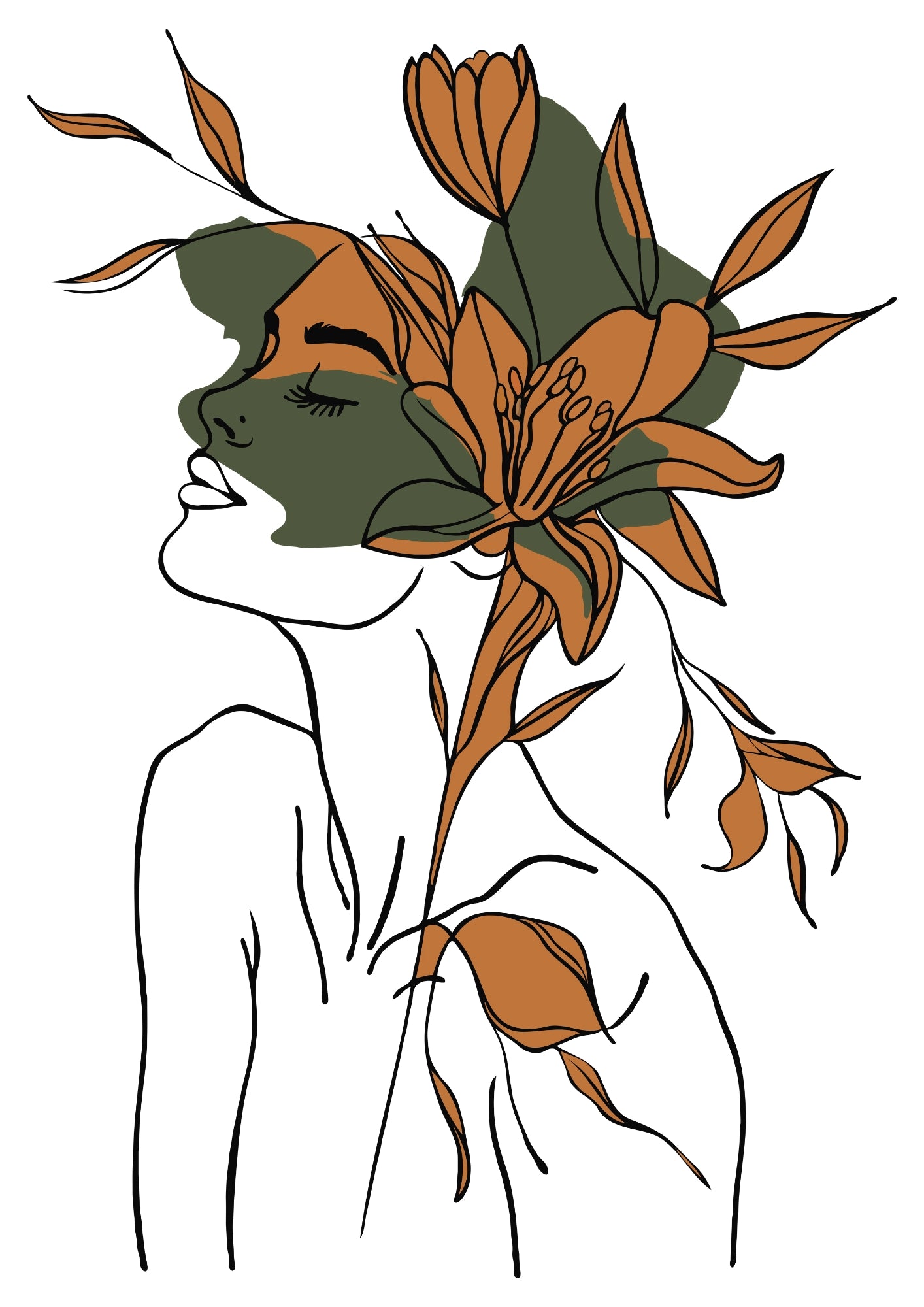 Ten plakat to subtelne połączenie kobiecej formy i natury, w której kwiaty ożywiają postać, tworząc harmonię między człowiekiem a przyrodą. Delikatne linie i naturalne odcienie zieleni oraz pomarańczy wprowadzają do wnętrza wyjątkową lekkość i świeżość. Idealny wybór dla każdego, kto pragnie wprowadzić do swojego domu odrobinę natury w nowoczesnym wydaniu.Minimalistyczny design, maksymalny efekt