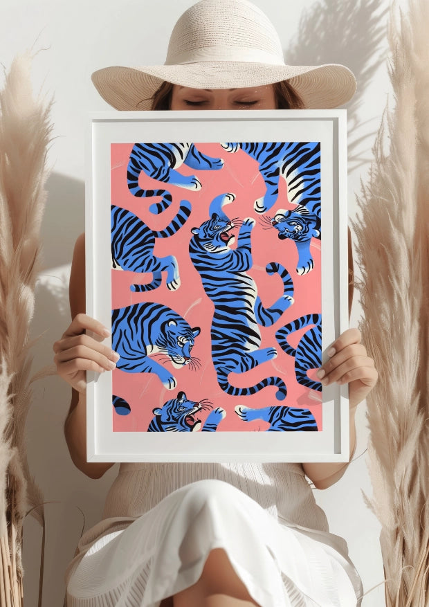 Niebieskie Tygrysy na Różowo Plakat