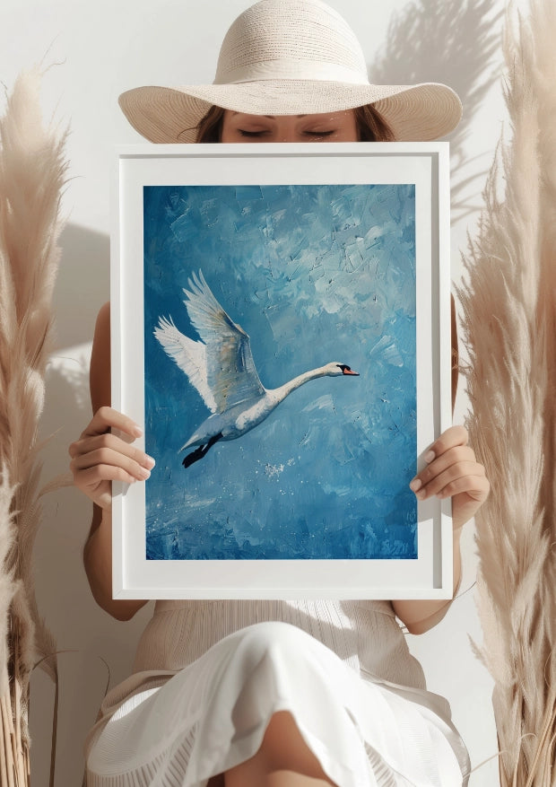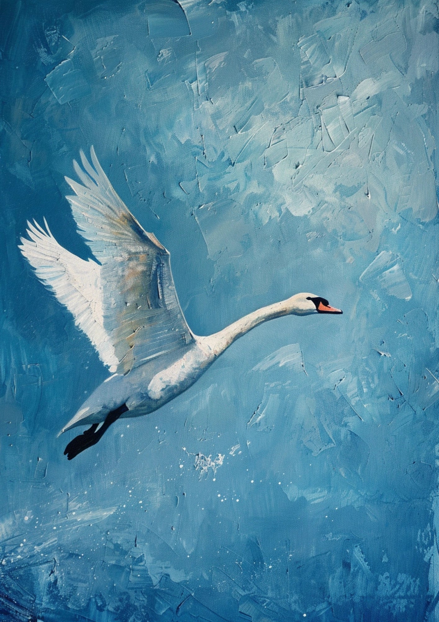 Wprowadź do swojego domu wyjątkową atmosferę harmonii i ciszy. Gdy spojrzysz na ten piękny, latający łabędź, poczujesz, jak stres dnia codziennego ulatuje daleko poza horyzont. Idealny dla każdego, kto pragnie chwil wytchnienia, plakat ten stanowi nie tylko dekorację, ale i źródło codziennej inspiracji. Pozwól sobie na chwilę oddechu i wejdź w świat pełen łagodnych ruchów i subtelnej elegancji.Zamów Swój Unikalny Plakat Dziś
