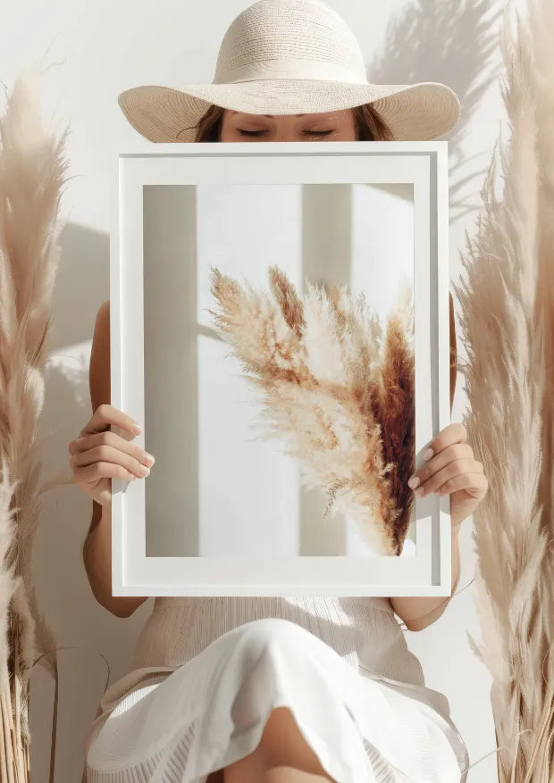 Plakat „Pióropusze Pampas w Słonecznym Blasku” to niezwykle subtelne i delikatne ujęcie natury w jej najpiękniejszej postaci. Przedstawiając pióropusze traw pampas, oświetlone ciepłym, słonecznym światłem, ten plakat emanuje spokojem i harmonią. Każdy detal miękkich pióropuszy wprowadza do wnętrza ciepło i naturalną elegancję, podkreśloną przez delikatne cienie na tle.
