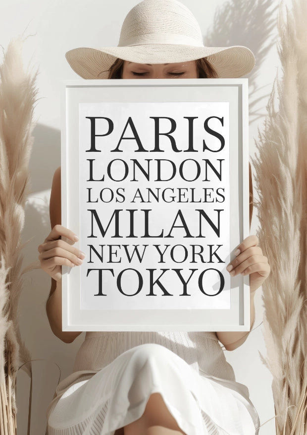 Ten elegancki plakat, wykonany z najwyższej jakości materiałów, idealnie wpisuje się w nowoczesne wnętrza. Minimalistyczny design podkreślany nazwami ikonicznych miast - Paryża, Londynu, Los Angeles, Mediolanu, Nowego Jorku i Tokio - dodaje wnętrzu subtelnego uroku i klasy.Twoje Okno na Świat