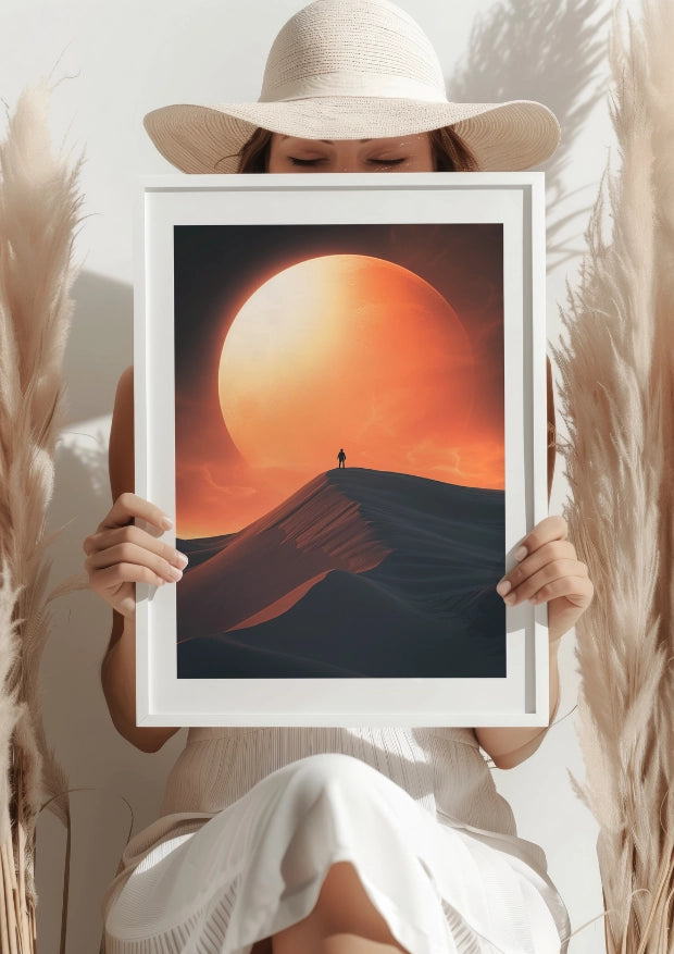 Ten plakat wyróżnia się niezwykłą dbałością o detale. Spokojne barwy i delikatny blask księżyca przyciągają wzrok, a sylwetka podróżnika dodaje tajemniczości. Wysokiej jakości druk na trwałym papierze gwarantuje, że każdy szczegół pozostaje żywy i wyrazisty przez lata.Przenieś się w Świat Marzeń
