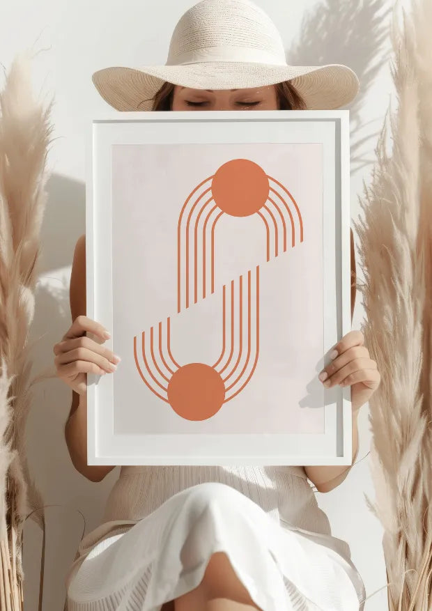 Plakat „Pomarańczowe Geometryczne Połączenie” wprowadza do wnętrza wyjątkową harmonię między geometrycznymi kształtami i żywym, pomarańczowym kolorem. Linie przeplatają się w minimalistycznym stylu, tworząc spójną całość, która idealnie komponuje się z nowoczesnymi aranżacjami.