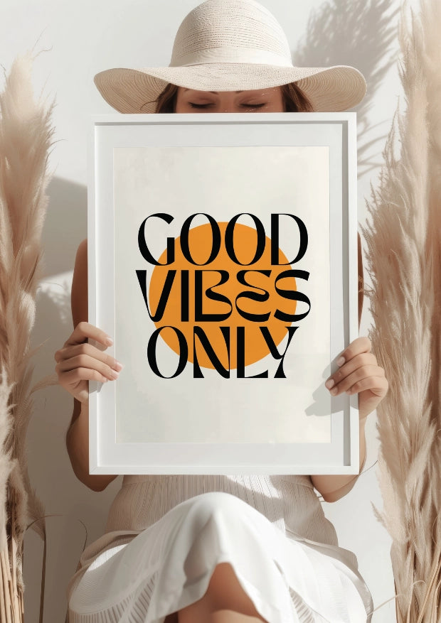 Plakat „Pozytywne Wibracje Tylko” to proste, ale wyraziste przypomnienie, że pozytywna energia może zmienić każdy dzień. Wyraźne czarne litery na tle żywego pomarańczowego kręgu ożywią każde pomieszczenie i sprawią, że będziesz czuć się pełen energii od samego rana.Idealne połączenie stylu i inspiracji