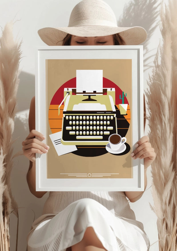 Ten plakat idealnie oddaje atmosferę twórczej pracy – kawa, cichy stukot klawiszy i świeże kartki gotowe na kolejne pomysły. Każdy detal został starannie zaprojektowany, aby oddać hołd zarówno sztuce pisania, jak i wszystkim, którzy kochają tworzyć.Idealna dekoracja do biura lub gabinetu