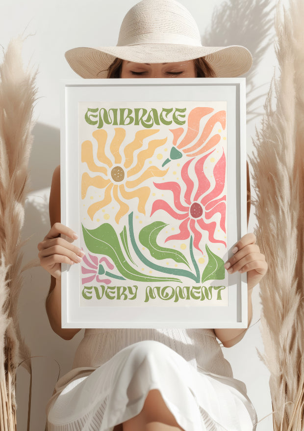 Plakat „Rozkwitaj Pomimo Trudności” to artystyczna kompozycja, która łączy w sobie delikatność kwiatów z metaforycznym motywem motyla. Barwne kwiaty i motyl symbolizujący przemianę i siłę w trudnych chwilach przypominają, że każdy trud może przynieść piękno i rozwój.