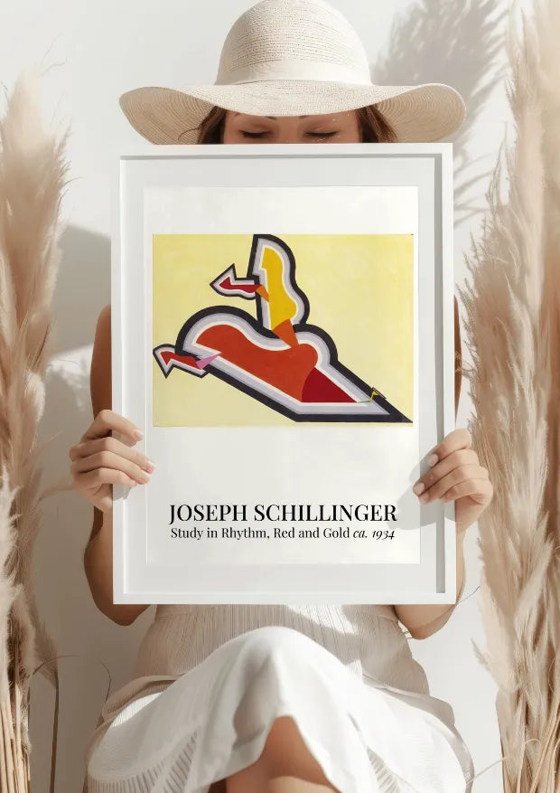 Praca Schillingera emanuje intensywnością czerwieni i złota, które kontrastują z delikatnym tłem. Dynamiczne kształty, rytmicznie ułożone na płótnie, tworzą kompozycję pełną ruchu i emocji. Każda linia i każdy kolor wprowadzają do obrazu rytm, który przyciąga wzrok i pobudza wyobraźnię.