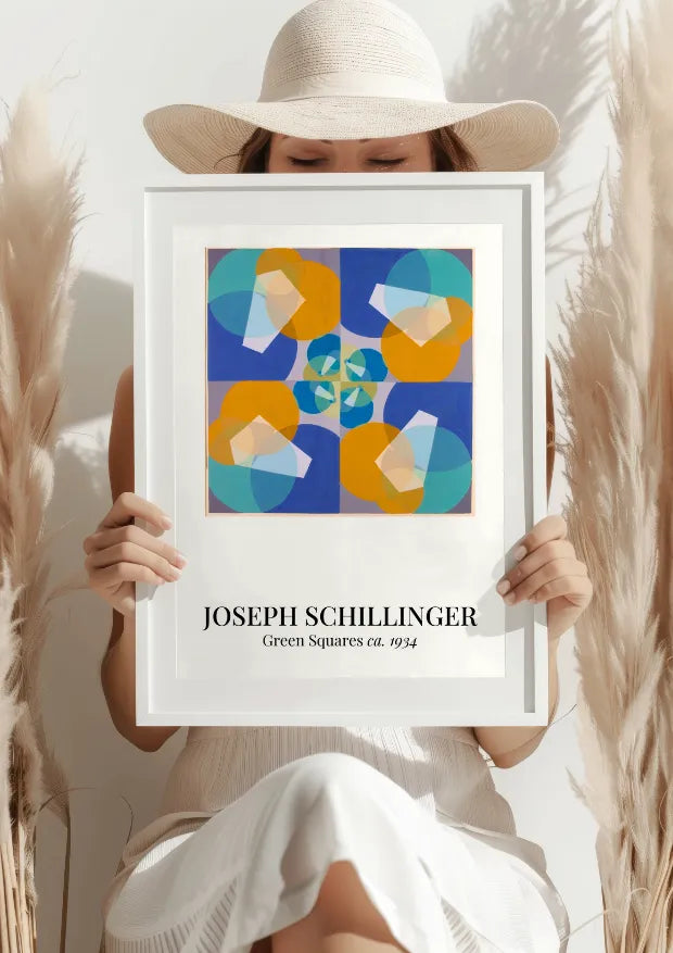 Plakat „Schillinger Zielone Kwadraty” to eksplozja barw i kształtów, która natychmiast przyciąga uwagę swoją złożonością i harmonią. Kręgi, kwadraty i inne geometryczne formy współgrają tutaj w niesamowity sposób, tworząc dynamiczny obraz, który z łatwością stanie się centralnym punktem każdego pomieszczenia. To dzieło, które ożywia przestrzeń i inspiruje.