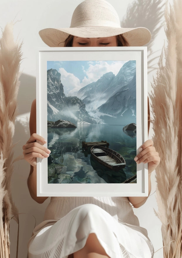 Podziwiaj wyjątkowe szczegóły: delikatnie falujące wody, łódź czekającą na podróż i mgielne szczyty górskie, które wydają się sięgać nieba. Wysokiej jakości druk na trwałym papierze zapewnia, że każda linia i odcień są perfekcyjnie odwzorowane, dostarczając niezapomnianych wrażeń wizualnych. Nasz plakat to nie tylko dekoracja — to okno do innego świata.Magia, która Wzbudza Uczucia