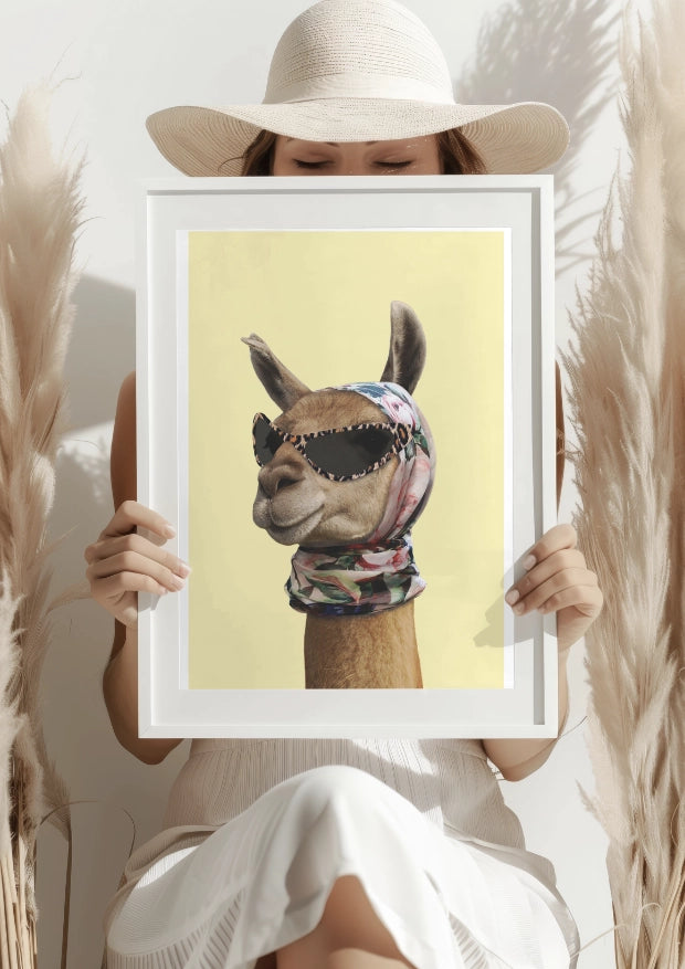 Nasz plakat to nie tylko obraz. To wyjątkowa opowieść o lamie, która zyskała miano modowej ikony. Detale, takie jak kolorowa chusta i oryginalne okulary, sprawiają, że lama staje się symbolem awangardowego stylu. Wydrukowany na wysokiej jakości papierze, plakat gwarantuje trwałość i wyrazistość kolorów, które będą ozdabiać Twoje ściany przez długie lata.Twoja Przestrzeń, Twoje Modowe Wyznanie