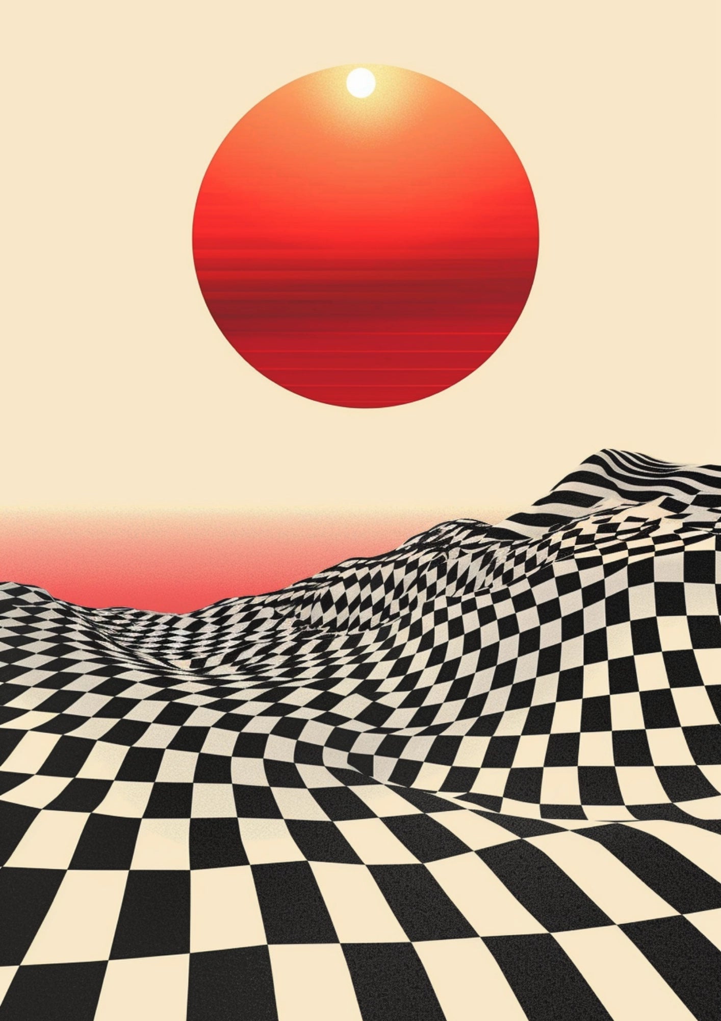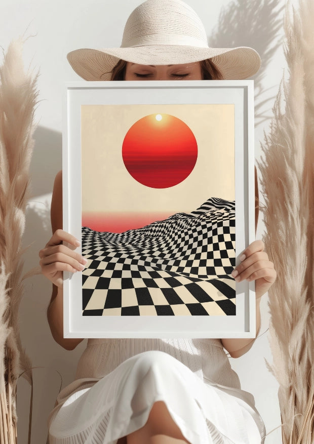 Zanurz się w świecie, gdzie rzeczywistość splata się z fantazją. Nasz plakat "Surrealistyczny Krajobraz Słońca" to niezwykłe dzieło sztuki, które wprowadza atmosferę tajemniczości i zachwytu do każdego wnętrza. Odcienie czerwonego słońca na tle falujących form przyciągną oko każdego, kto przekroczy próg Twojego domu.Detale, które Zmienią Każde Pomieszczenie