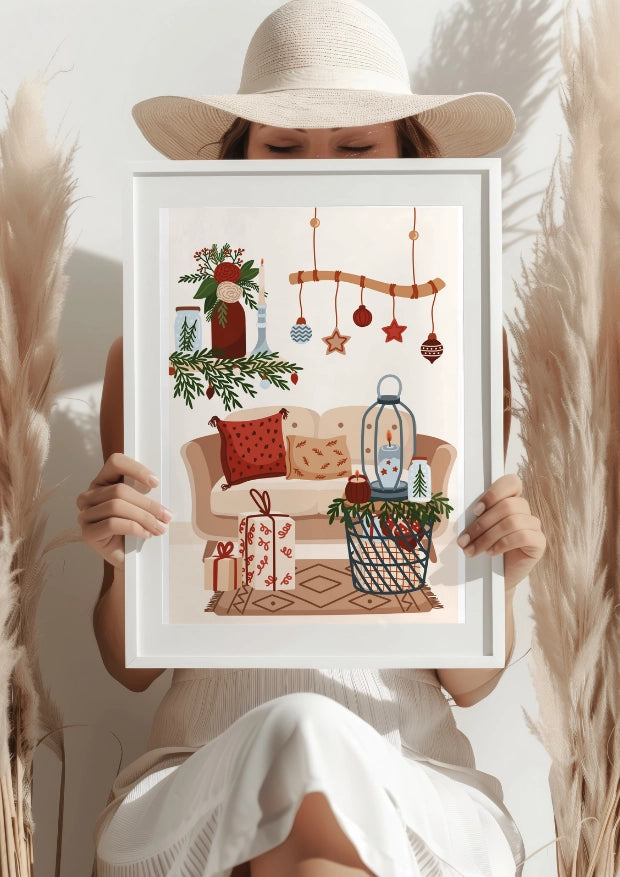 Każdy element tego plakatu jest starannie zaprojektowany, by oddać esencję świątecznego klimatu. Przytulne poduszki, subtelne dekoracje i rustykalne dodatki tworzą harmonijny obraz, który doda Twojemu salonowi niepowtarzalnego uroku. Wysokiej jakości druk sprawia, że kolory są żywe i trwałe, a plakat doskonale komponuje się z każdą stylistyką wnętrz.Przywróć Magię Świątecznym Chwilom