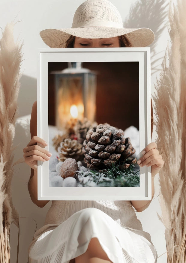 Każdy szczegół tego plakatu został opracowany z myślą o tym, by uchwycić esencję zimowej atmosfery. Zobacz, jak delikatne kryształki lodu osadzają się na powierzchni szyszek, podczas gdy ciepłe światło lampionu tworzy niepowtarzalną aurę spokoju i harmonii. Ten plakat to nie tylko dekoracja – to doświadczenie.Wzbogacenie, Które Rozgrzewa Serce