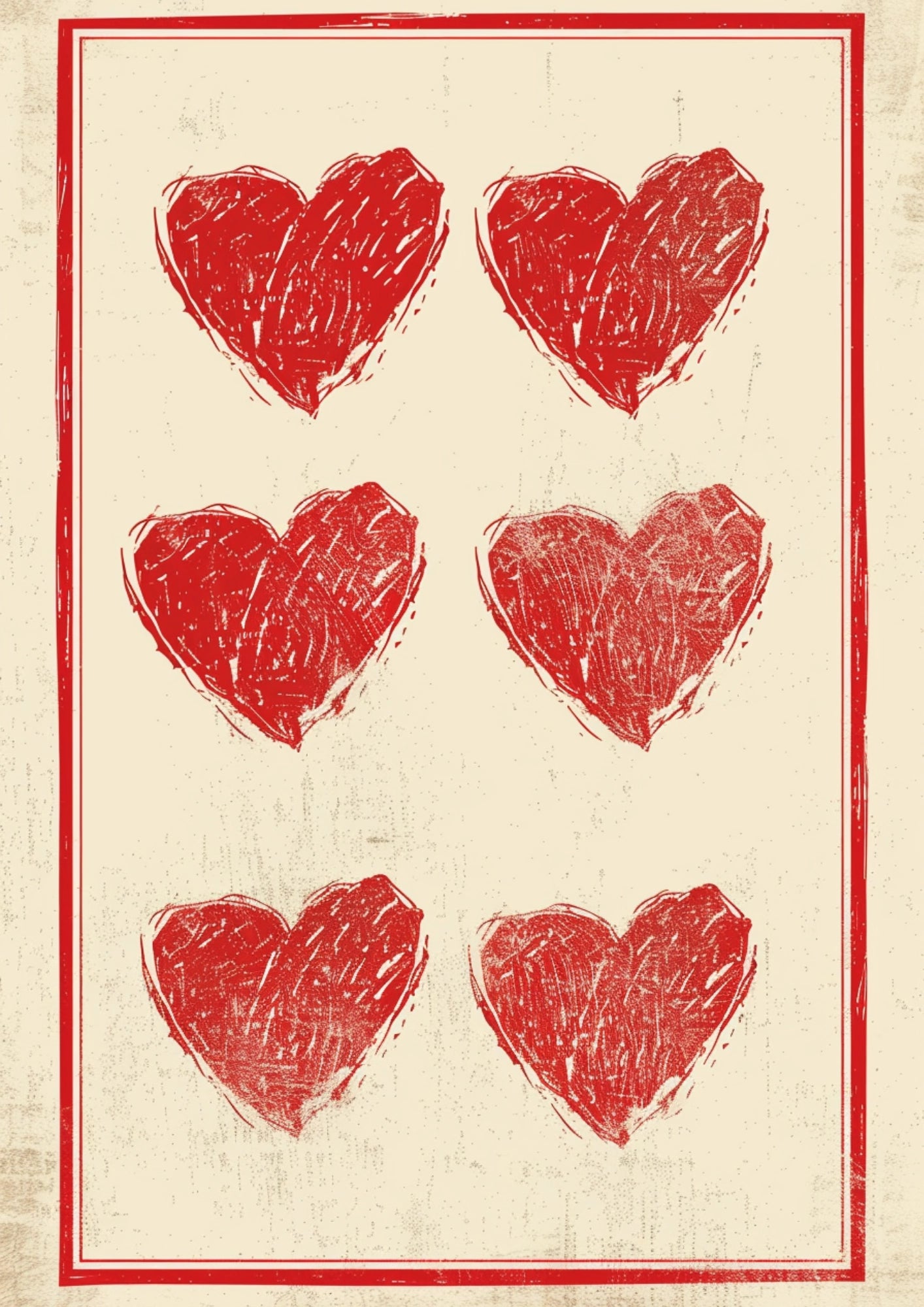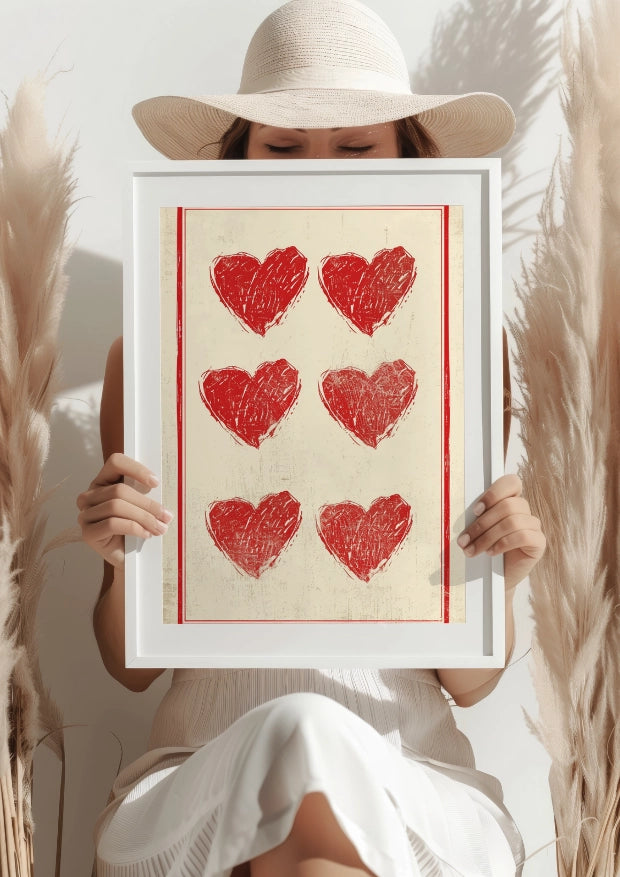 Wyjątkowy plakat, który przyciąga wzrok i emanuje miłością od pierwszego spojrzenia. Sześć czerwonych serc, jak sześć uderzeń serca, które wzbogacą każdą przestrzeń, od salonu po sypialnię. Wyraź swoje uczucia poprzez ten unikalny element dekoracyjny.Porusz Serce Detalami