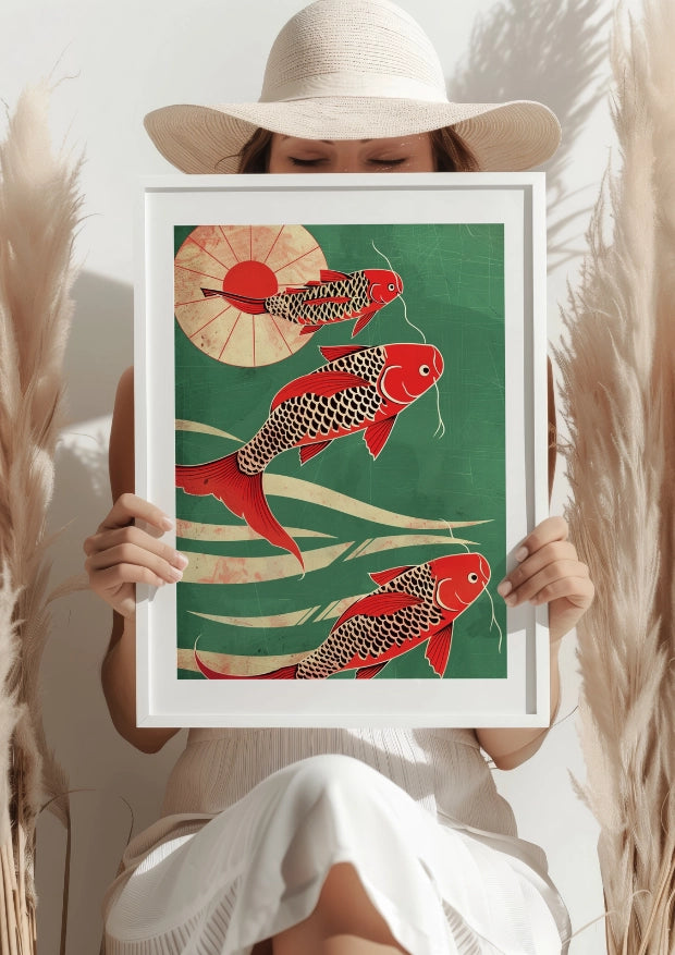Zanurz się w głębinach spokoju, jaki przynoszą karpie koi. Dodaj życia swoim ścianom i poczuj, jak niezrównana harmonia koi koi wpływa na Twoje samopoczucie. To nie tylko plakat, to podróż do wnętrza samego siebie, gdzie każda chwila spędzona w jego obecności staje się szansą na regenerację i odnalezienie wewnętrznego spokoju.Zamów Teraz i Odkryj Japan Style