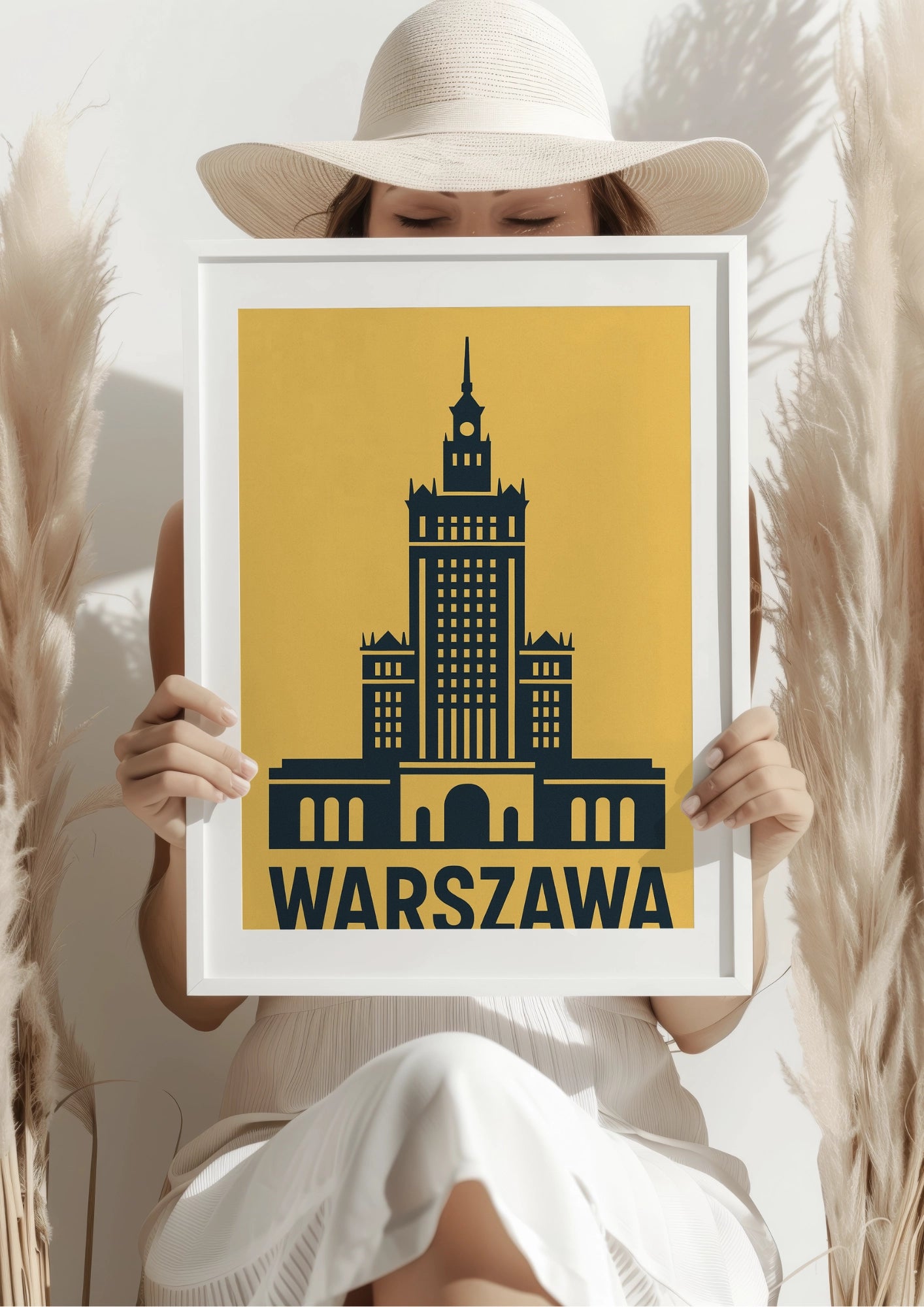 Ten plakat przedstawia jeden z najbardziej rozpoznawalnych symboli Warszawy – Pałac Kultury i Nauki – w minimalistycznej, kontrastowej odsłonie. Na tle energetycznej żółci sylwetka Pałacu jawi się niczym monumentalny cień przeszłości i teraźniejszości, łącząc socrealistyczny rozmach z nowoczesnym podejściem do formy. To wizualna esencja miasta, które nigdy nie przestaje się zmieniać.