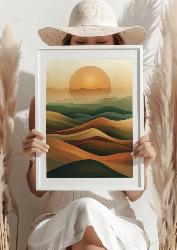 Odkryj magiczny świat, w którym zachodzące słońce maluje niebo nad wzgórzami feerią ciepłych barw. Nasz "Zachód Słońca Nad Wzgórzami Plakat" to połączenie naturalnego piękna z artystycznym designem, które przyciągnie wzrok każdego, kto przekroczy próg Twojego domu.Detale, które Zahipnotyzują