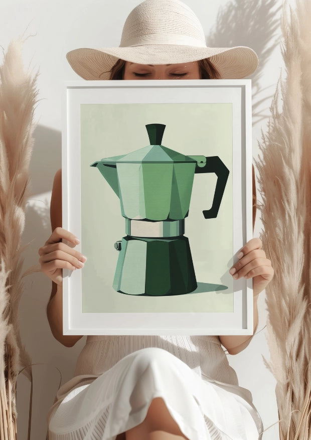 Zielona Kawiarka W Klimacie Retro Plakat