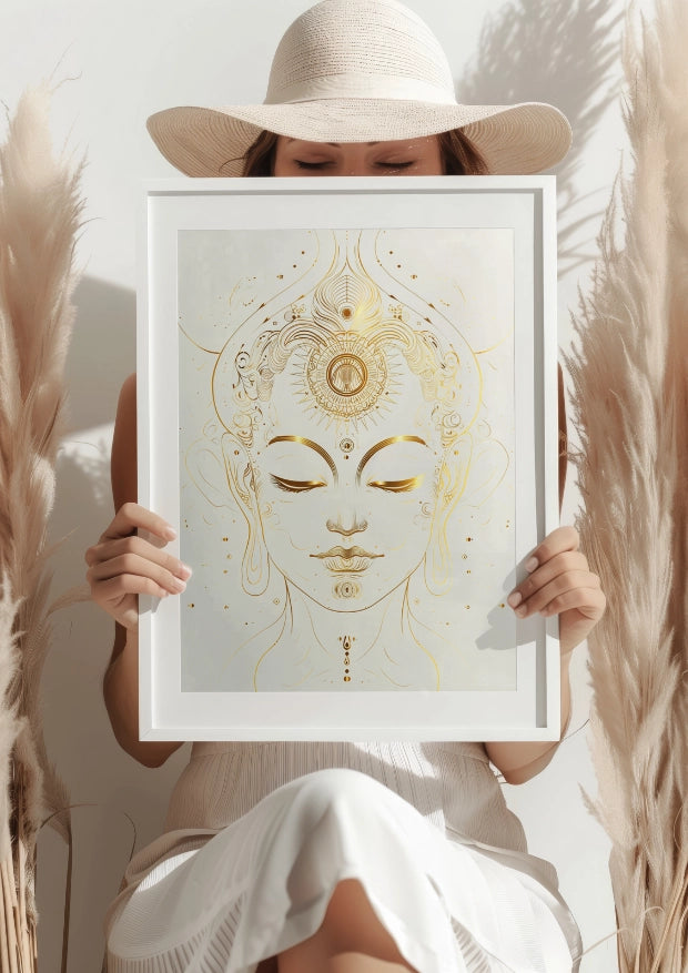 Wyobraź sobie, jak ten plakat odmienia Twoje otoczenie, dodając mu ciepła i równowagi. Każde spojrzenie przypomina o ważności chwili obecnej, zachęcając do zatrzymania się i medytacji. Pozwól, by "Złoty Spokój Medytacyjny" stał się źródłem inspiracji w Twoim życiu.Znajdź Swój Spokój Już Dziś